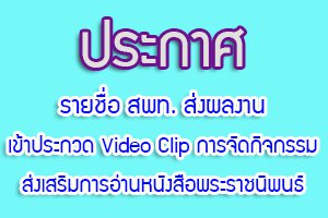 ประกาศ รายชื่อสำนักงานเขตพื้นที่การศึกษาส่งผลงานเข้าประกวด Video Clip การจัดกิจกรรมส่งเสริมการอ่านหนังสือพระราชนิพนธ์