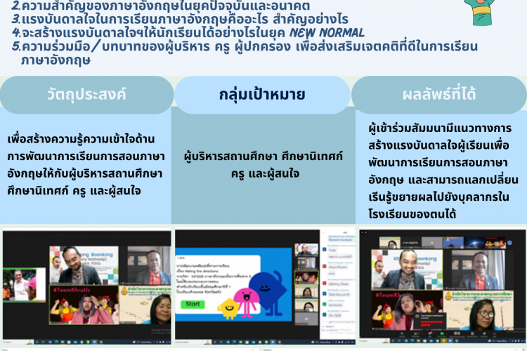 กิจกรรมสัมมนาออนไลน์ “การสร้างแรงบันดาลใจในการเรียนภาษาอังกฤษ”