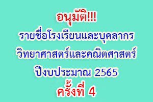 อนุมัติรายชื่อโรงเรียนและบุคลากรวิทยาศาสตร์และคณิตศาสตร์และจัดสรรงบประมาณจ้างบุคลากรวิทยาศาสตร์และคณิตศาสตร์ กิจกรรมครูคลังสมองปีงบประมาณ พ.ศ. 2565 ครั้งที่ 4