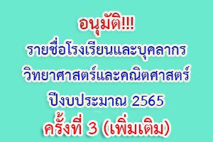 อนุมัติรายชื่อโรงเรียนและบุคลากรวิทยาศาสตร์และคณิตศาสตร์และจัดสรรงบประมาณจ้างบุคลากรวิทยาศาสตร์และคณิตศาสตร์ กิจกรรมครูคลังสมองปีงบประมาณ พ.ศ. 2565 ครั้งที่ 3 (เพิ่มเติม)