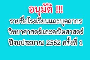 อนุมัติรายชื่อโรงเรียนและบุคลากรวิทยาศาสตร์และคณิตศาสตร์ และจัดสรรงบประมาณจ้างบุคลากรฯ เพิ่มเติม ครั้งที่ 1