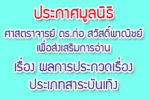 ประกาศมูลนิธิศาสตราจารย์ ดร.ก่อ สวัสดิ์พาณิชย์ เพื่อส่งเสริมการอ่าน