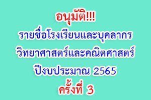 อนุมัติรายชื่อโรงเรียนและบุคลากรวิทยาศาสตร์และคณิตศาสตร์และจัดสรรงบประมาณจ้างบุคลากรวิทยาศาสตร์และคณิตศาสตร์ กิจกรรมครูคลังสมองปีงบประมาณ พ.ศ. 2565 ครั้งที่ 3 (เพิ่มเติม)