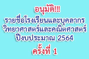 อนุมัติรายชื่อโรงเรียนและบุคลากรวิทยาศาสตร์และคณิตศาสตร์และจัดสรรงบประมาณจ้างบุคลากรวิทยาศาสตร์และคณิตศาสตร์ โครงการพัฒนาคุณภาพและมาตรฐานการศึกษา กิจกรรมครูคลังสมอง ปีงบประมาณ 2564 ครั้งที่ 1