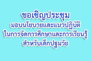 ขอเชิญเข้าร่วมการประชุมมอบนโยบายและแนวปฏิบัติในการจัดการศึกษาและการเรียนรู้สำหรับเด็กปฐมวัย