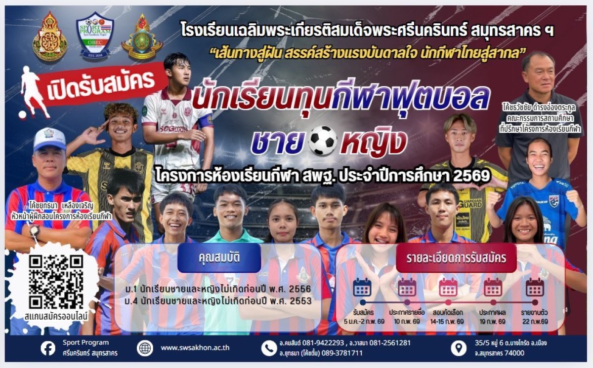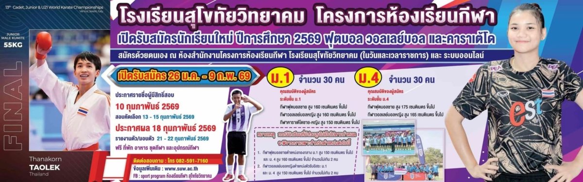 กำหนดการรับนักเรียนโครงการห้องเรียนกีฬา ปีการศึกษา 2569